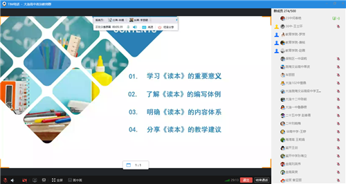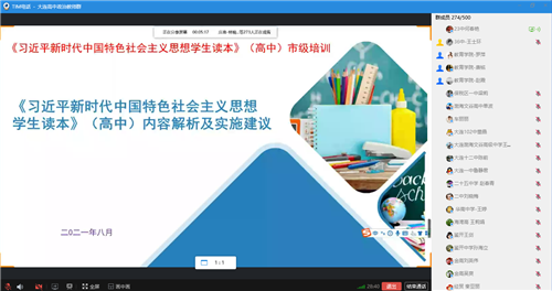 本次培訓(xùn)活動(dòng)采取線上形式,由市思政研訓(xùn)教師研員唐銘、趙霞、羅萍共同組織。首先,羅萍老師簡(jiǎn)單介紹了大連市《讀本》前期培訓(xùn)的基本情況,強(qiáng)調(diào)了此次《讀本》研訓(xùn)的必要性和重要性。隨后,大連市二十三中學(xué)何春艷老師做了題為《〈習(xí)近平新時(shí)代中國(guó)特色社會(huì)主義思想學(xué)生讀本〉(高中)內(nèi)容解析及實(shí)施建議》的講座,何老師從學(xué)習(xí)意義、編寫體例、內(nèi)容體系和教學(xué)建議四個(gè)方面分別做了介紹,指出《讀本》是貫徹落實(shí)“三進(jìn)”要求的重要部署,是推進(jìn)鑄魂育人根本任務(wù)的重要舉措,是推動(dòng)大中小學(xué)思政課一體化建設(shè)的重要實(shí)踐,從《讀本》編寫體例中“導(dǎo)語(yǔ)”“正文”“延伸閱讀”“金句”“學(xué)習(xí)思考”分別給出了自己的獨(dú)到見解和使用建議。在對(duì)《讀本》內(nèi)容體系的解讀中,何老師建議老師們采用通讀和詳讀相結(jié)合的方式梳理教材邏輯,明確教材結(jié)構(gòu),并以第二講為例展示了“提出問(wèn)題-閱讀文本-交流討論-闡釋觀點(diǎn)-形成認(rèn)同”的教學(xué)過(guò)程,指出了創(chuàng)新評(píng)價(jià)方式,多形式展示學(xué)習(xí)成果的重要性。作為明道、信道、傳道的思政課教師,何老師政治強(qiáng)、情懷深、思維新、視野廣、自律嚴(yán)、人格正,講座深深地吸引了每一位參訓(xùn)教師,贏得了老師們的一致贊賞。