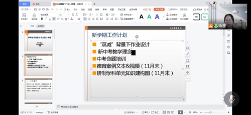 此次線上教研活動共同探討合理設(shè)計基于學(xué)科德育背景下的作業(yè)設(shè)計,并對各區(qū)域作業(yè)設(shè)計方案實施要求做了細(xì)致的部署與安排。同時鑒于新生未來考試評價方案與教學(xué)的有機結(jié)合等實踐性工作指明了教學(xué)方向。