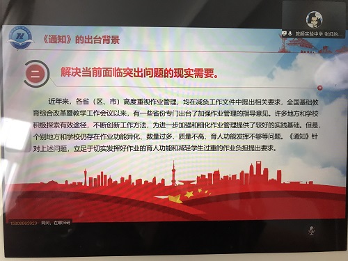 會(huì)議內(nèi)容由共同學(xué)習(xí)政策文件、分享前言文獻(xiàn)、實(shí)踐探索引領(lǐng)和總結(jié)分析指導(dǎo)四部分組成。大連旅順實(shí)驗(yàn)學(xué)校張紅老師、大連開(kāi)發(fā)區(qū)濱海學(xué)校吳佳慧老師、大連開(kāi)發(fā)區(qū)七中盧海玉老師、大連第七十六中學(xué)尹楠楠老師、大連第七中學(xué)王艷俠老師和大連第三十三中學(xué)張永閣老師作為教學(xué)代表從不同方面結(jié)合自己的學(xué)習(xí)體會(huì)和教學(xué)實(shí)踐經(jīng)驗(yàn)在會(huì)上做了精彩的分享。大連教育學(xué)院初中英語(yǔ)教研員劉敬雯老師最后做了總結(jié)發(fā)言,劉老師針對(duì)征集的來(lái)自全市161所學(xué)校的300余份作業(yè)布置樣例進(jìn)行了全市作業(yè)布置現(xiàn)狀匯報(bào),分析了共性特點(diǎn)、主要問(wèn)題并提出了新學(xué)期的教學(xué)建議。此次會(huì)議結(jié)束后,要求各校教研組長(zhǎng)和備課組長(zhǎng)帶領(lǐng)本校老師進(jìn)一步學(xué)習(xí)文件精神,通過(guò)分析本校作業(yè)布置現(xiàn)狀、學(xué)習(xí)借鑒他人的優(yōu)秀成果進(jìn)行作業(yè)設(shè)計(jì)改進(jìn),并在兩周內(nèi)再次提交作業(yè)改進(jìn)樣例供全市教師再次研討。