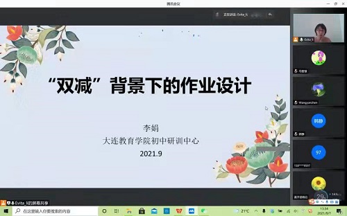 9月7日,初中化學(xué)"雙減"背景下作業(yè)設(shè)計(jì)研討活動,在騰訊會議平臺上舉行。大連教育學(xué)院初中研訓(xùn)中心研訓(xùn)教師、各區(qū)市縣初中化學(xué)教研員、各校教研組長共計(jì)241人參加了活動,會議由市研訓(xùn)教師李娟主持。
