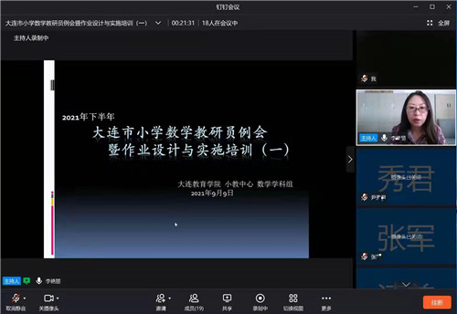 9月9日下午,大連市小學數(shù)學教研員例會暨作業(yè)設計與實踐培訓會利用釘釘視頻會議系統(tǒng)召開。本次線上活動由大連教育學院小學研訓中心數(shù)學教研員李艷麗、劉稀鳳主持,全市各區(qū)(市)、縣小學數(shù)學區(qū)域教研員參加了本次活動。
