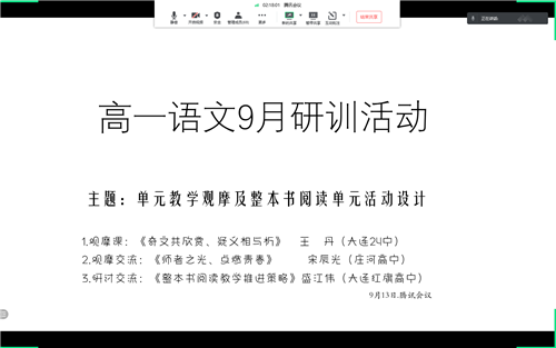 2021年9月13日下午,高中研訓中心語文學科組研訓教師宋亞科利用騰訊會議,在線上組強了一次主題為“單元教學設(shè)計策略與實施之第一單元教學觀摩及整本書閱讀與研討學習任務(wù)群教學策略交流研討”的研訓活動。