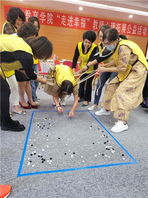 “渾水摸棋”考驗的不僅僅是團隊的合作意識,更是隊員間的互相信任,老師們通力合作時的投入和勁兒往一處使時的默契讓彼此的聯(lián)系更加緊密,一枚枚棋子落入盒中時勝利的吶喊,把現(xiàn)場氣氛一次次推向高潮,那是能聽見的喜悅和幸福。