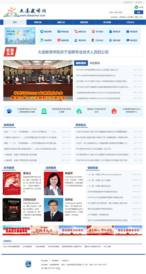 教師網改版是教育信息技術中心2021年的一項重點工作,也是為滿足日益增長的大連市教師教育、教研培訓等線上線下融合業(yè)務需求而進行的頁面升級。改版延用了舊版的教師檔案、教師培訓、教育科研、好書推薦、名師榜、電子圖書等欄目資源,整合了干部培訓管理、視頻資源、大連NOC等平臺內容。精簡了外鏈資源,堅決杜絕死鏈、暗鏈等信息出現(xiàn)。