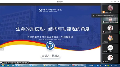 2022年10月11日下午,大連市高中生物學(xué)科高一年級(jí)通過線上騰訊會(huì)議的方式進(jìn)行十月研訓(xùn)活動(dòng)。大連市高一年級(jí)的生物學(xué)教師參加了此次活動(dòng),此次活動(dòng)由大連教育學(xué)院高中研訓(xùn)中心生物學(xué)科室慕曉茹老師主持。