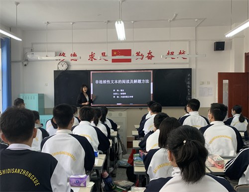 10月22日,高中語文“揭榜掛帥”名師驛站第二講于大連市第三中學(xué)開展。徐雪婷老師用線上線下同步授課的方式,為報名學(xué)習(xí)的學(xué)生講解“非連續(xù)性文本的閱讀及解題方法”。大連教育學(xué)院高中研訓(xùn)中心語文教研員鄭淑清老師給予了細(xì)致指導(dǎo)。25名學(xué)生參加了線下學(xué)習(xí),百余名學(xué)生通過騰訊會議直播進(jìn)行了專題學(xué)習(xí)。高三語文組的教師也觀摩了直播授課,并做了交流研討。