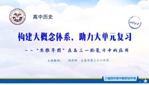 25日下午的學(xué)科論壇展示了來自四個城市的專題講座。大連市第三十六中學(xué)的劉世陽老師的《構(gòu)建大概念體系,助力大單元教學(xué)——“思維導(dǎo)讀”在高三一輪復(fù)習(xí)中的應(yīng)用》講座具有實操性。劉老師首先梳理學(xué)生在一輪復(fù)習(xí)中普遍存在的問題,針對這些問題系統(tǒng)講解如何使用思維導(dǎo)圖引領(lǐng)大概念大單元的復(fù)習(xí)。劉老師的講座有方法、有示例,其思維導(dǎo)圖復(fù)習(xí)方法既符合歷史學(xué)科自身的規(guī)律,又符合學(xué)生學(xué)習(xí)的規(guī)律;既有助于洞悉高考命題方向,也有助于“雙減”真正落地。