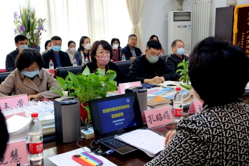 在會議室,調(diào)研組查閱了學(xué)生作業(yè)本、教師教案、教研組集備記錄、聽課和批改記錄以及學(xué)校在課程建設(shè)、教師隊(duì)伍建設(shè)、落實(shí)大思政育人和“雙減”等方面的材料,肯定了學(xué)校嚴(yán)格按照國家課程標(biāo)準(zhǔn),落實(shí)開足三級課程,并構(gòu)建了校本特色課程體系,全體教師不忘為黨育人、為國育才的初心,不打折扣地落實(shí)國家政策;同時(shí)對重視學(xué)科核心素養(yǎng)、繼續(xù)推進(jìn)統(tǒng)籌整合三級課程等提出了更高的要求。