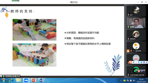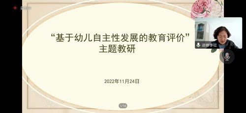 為進(jìn)一步落實(shí)《幼兒園保育教育質(zhì)量評(píng)估指南》,交流幼兒園教師在教育評(píng)價(jià)方面的實(shí)踐經(jīng)驗(yàn)與做法,為教師解決教育評(píng)價(jià)實(shí)踐問題提供參考和策略,11月24日下午,學(xué)前研訓(xùn)中心趙宇老師組織“促進(jìn)幼兒自主性發(fā)展實(shí)踐研究”專題組通過線上騰訊會(huì)議,召開了“基于幼兒自主性發(fā)展的教育評(píng)價(jià)主題教研”。專題組的研訓(xùn)教師、園長和教師全體成員和部分幼兒園園長及教師近300人參加。