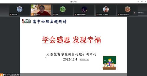 此次活動借助騰訊會議,對莊河市第四高中張會老師常規(guī)心理課《心懷感恩提升幸福》進行了聽、評、議。通過活動,理清了感恩與幸福的理論背景和高中生現(xiàn)實需求,細(xì)化了主題,明確了教學(xué)目標(biāo)和重難點,分析研判了課程設(shè)計路線和實施成效,逐步澄清課程設(shè)計和實施的邏輯和理念,教師課程素養(yǎng)獲得整體提高,服務(wù)能力也進一步獲得提升。
