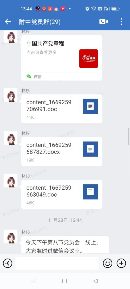 11月28日下午,按照學(xué)院黨委的工作部署,附中黨支部在企業(yè)微信會議平臺舉行了線上11月份黨日活動。會議由黨支部書記林杉主持并主講,全體黨員同志參加了黨日活動。