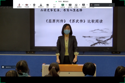 活動(dòng)由三個(gè)部分組成。第一部分的內(nèi)容是視頻觀摩課,是由金州高中王羚老師執(zhí)教的《<屈原列傳><蘇武傳>比較閱讀》,王老師的課在設(shè)計(jì)時(shí)充分考慮到了兩篇文言文人物傳記的文體特點(diǎn),并能圍繞著語(yǔ)文核心思維的落實(shí)進(jìn)行問(wèn)題設(shè)計(jì),組織學(xué)生學(xué)習(xí)活動(dòng)。課堂上王老師的問(wèn)題具有一定的研習(xí)性特點(diǎn),適合高二學(xué)生的思維發(fā)展特點(diǎn)。第二部分為微專題講座,由金州高中何玲老師做了題為《統(tǒng)編版高中語(yǔ)文選擇性必修中冊(cè)第三單元教學(xué)思考》講座。講座中,何老師首先對(duì)選擇性必修中冊(cè)第三單元教材的單元構(gòu)成進(jìn)行了解析,然后從“專題”“研習(xí)”為抓手,系統(tǒng)介紹了備課組如何使用好教材的,并結(jié)合有關(guān)的案例,對(duì)本單元教學(xué)設(shè)計(jì)及教學(xué)實(shí)踐進(jìn)行了介紹。第三部分是研訓(xùn)教師宋亞科結(jié)合本次專題,做了一個(gè)題為“文言文人物傳記的比較閱讀”的講座。講座中,宋老師首先闡明了比較閱讀課的基本特點(diǎn)和流程,然后從比較閱讀的目的為出發(fā)點(diǎn),指出比較閱讀指向核心素養(yǎng)是關(guān)鍵,抓住可比性是教學(xué)抓手,從比較內(nèi)容的平衡性、比較過(guò)程的可指導(dǎo)性和比較結(jié)果的可檢測(cè)性三個(gè)方面,以《屈原列傳》和《蘇武傳》為案例,進(jìn)行詳細(xì)地分析。
