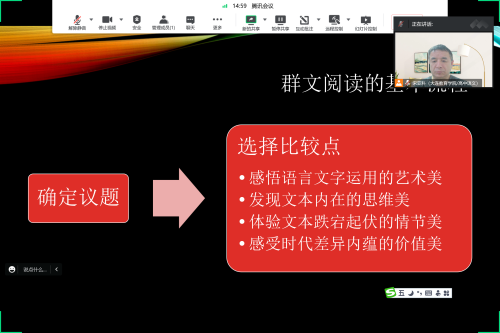 2022年12月19日下午1點(diǎn),大連教育學(xué)院高中研訓(xùn)中心語(yǔ)文學(xué)科組研訓(xùn)教師宋亞科利用騰訊會(huì)議,在線上組織了一次主題為“基于研習(xí)任務(wù)的大單元”研訓(xùn)活動(dòng)。