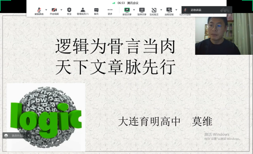 活動由兩部分組成。第一部分的內容是視頻觀摩課,是育明高中鄒煒航老師執(zhí)教的《行成于思,論證有道》,鄒老師的課由三個學習任務活動組成:任務一,回顧探究,分析了以《六國論》為例典型性議論文章中的論證特點,從議論文觀點、論證思路、論據(jù)、論證方式和語言等五個方面,概括提煉了議論文的基本論證特點,然后以一個材料作文為實例,帶領學生進行立意分析和議論性文章的基本架構,并讓學生小試牛刀,小組合作探究,為兩篇例文打分,并闡述理由。學生回答問題積極,打分的理由闡述比較合理;最后,趁熱打鐵,升格作文,讓學生在前面的鋪墊上及時修改作文,并分享自己的成果。整節(jié)課學生對作文好的標準明確,兩篇例文選擇合理,學生有的放矢,收獲不小。第二部分是由育明高中莫維老師帶來的微專題講座《邏輯為骨言當肉,天下文章脈先行》,講座中,莫老師先對選擇性必修上冊第四單元的教材進行了分析,然后介紹了備課組的具體做法和教學實施。并結合老師和學生的案例進行了適當?shù)亟馕雠c說明。