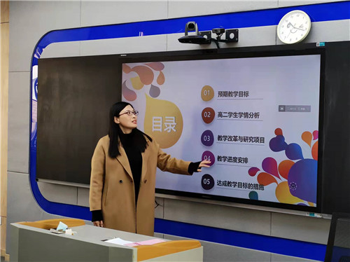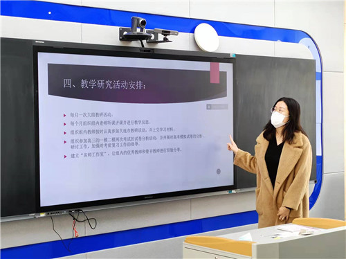 第二部分是由各個(gè)年級(jí)的備課組長(zhǎng)展示新學(xué)期本年級(jí)的工作計(jì)劃。高一備課組長(zhǎng)徐紀(jì)欣、高二備課組長(zhǎng)姚咸如和高三備課組長(zhǎng)高杰,分別從預(yù)期教學(xué)目標(biāo)、學(xué)情分析、教學(xué)改革與研究項(xiàng)目、教學(xué)進(jìn)度安排與達(dá)成目標(biāo)的措施幾個(gè)方面進(jìn)行了詳盡地闡述。