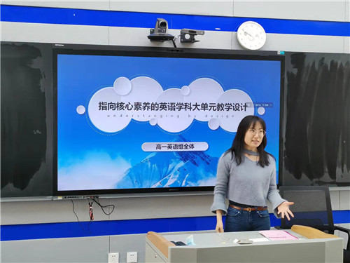 教研活動(dòng)分為三部分。首先,由每個(gè)組的中心發(fā)言人展示指向核心素養(yǎng)的單元學(xué)習(xí)教學(xué)設(shè)計(jì)。高一年級(jí)組中心發(fā)言人是遲金雙老師,一位優(yōu)秀的年輕老師。她的發(fā)言既有很深的理論高度,又細(xì)致地聯(lián)系到了寫作教學(xué)中,理論結(jié)合實(shí)踐,令人耳目一新;高二年級(jí)組中心發(fā)言人是邵玉喬老師,一位青年骨干教師,她就教材選修一的一個(gè)單元進(jìn)行詳盡并系統(tǒng)地介紹了如何進(jìn)行大單元教學(xué),讓人受益匪淺;高三年級(jí)組發(fā)言人是高杰老師,一位經(jīng)驗(yàn)非常豐富的教師,關(guān)于高三如何更有效地復(fù)習(xí)及材料的取舍,她做了詳細(xì)的經(jīng)驗(yàn)交流,凸顯其豐厚的教學(xué)底蘊(yùn)。
