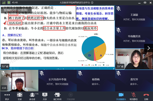 2022年2月28日上午,大連市高一生物學(xué)學(xué)科2~3月的線上教研活動(dòng)以小魚(yú)易連的方式舉行,共有141名高一年級(jí)的生物學(xué)教師參與了此次活動(dòng),此次活動(dòng)由大連教育學(xué)院高中生物學(xué)研訓(xùn)教師王潔老師主持。