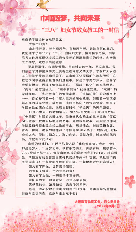 巾幗逐夢,共向未來——“三八”婦女節(jié)致女教工的一封信