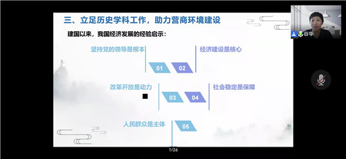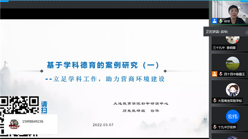 活動(dòng)中,谷華老師首先對(duì)上一年度工作進(jìn)行總結(jié)。第二,對(duì)新一年度歷史教研工作提出新的計(jì)劃和部署。新學(xué)年將深入落實(shí)“雙減”工作提出要求,多措并舉,推動(dòng)“雙減”走深走實(shí)。結(jié)合《遼寧省初中歷史課堂教學(xué)基本要求》強(qiáng)調(diào)教師進(jìn)一步高新教學(xué)理念,轉(zhuǎn)變育人方式,優(yōu)化教學(xué)模式,強(qiáng)化課堂教學(xué)的主陣地作用,切實(shí)提高課堂教學(xué)質(zhì)量;鼓勵(lì)全市教師積極探索提升作業(yè)設(shè)計(jì)的有效策略,同時(shí)面向全市征集優(yōu)秀的作業(yè)設(shè)計(jì)案例。第三,在助力營商環(huán)境建設(shè)方面,谷華老師結(jié)合新中國成立以來中國經(jīng)濟(jì)發(fā)展的歷程介紹了中國營商環(huán)境建設(shè)服務(wù)于中國經(jīng)濟(jì)高質(zhì)量發(fā)展的大局,并進(jìn)一步傳達(dá)了大連市委市政府印發(fā)的《大連市營商環(huán)境升級(jí)行動(dòng)方案(2022-2024年)》的精神,明確優(yōu)化營商環(huán)境要從我做起,從點(diǎn)滴做起。