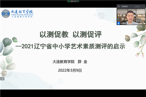 活動由大連市初中音樂教研員薛金老師主持,薛老師為參會老師作了《以測促教,以測促評--2021遼寧省中小學(xué)生藝術(shù)素質(zhì)測評的啟示》專題講座。從基于音樂音響---命題的出發(fā)點、基于表現(xiàn)要素---命題的立足點、基于真實情景---命題的著眼點、基于音樂實踐---命題的落腳點這四個維度,分析了遼寧省2021年中小學(xué)生音樂素質(zhì)測評的終結(jié)性評價命題題型。并探討如何通過測評命題找準(zhǔn)方向,在平日教學(xué)中,將重心放在關(guān)注學(xué)生運(yùn)用知識和技能的能力上,同時把音樂素質(zhì)測評的關(guān)注點轉(zhuǎn)向?qū)W生音樂思維的發(fā)展,以提升學(xué)生音樂素養(yǎng)為本位,讓“以情感人”“以美育人”的學(xué)科特性真正彰顯,讓音樂學(xué)科核心素養(yǎng)真正落地,讓立德樹人的愿景真正實現(xiàn)。