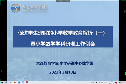3月10日下午,學(xué)院小學(xué)研訓(xùn)中心數(shù)學(xué)組利用線上平臺(tái)組織召開了“促進(jìn)學(xué)生理解的小學(xué)數(shù)學(xué)教育解析(一)暨2022年小學(xué)數(shù)學(xué)學(xué)科研訓(xùn)工作例會(huì)”。會(huì)議由市研訓(xùn)教師劉稀鳳主持,市研訓(xùn)教師劉悅宏、李艷麗和各區(qū)市縣數(shù)學(xué)學(xué)科研訓(xùn)教師共計(jì)20余人參加了會(huì)議。