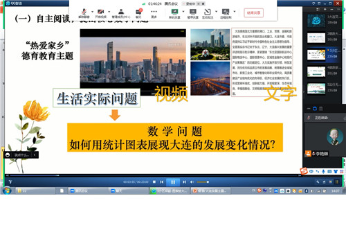 這次線上教研活動是大連教育學(xué)院響應(yīng)市委、市政府號召,立足本職工作,為我市營商環(huán)境建設(shè)做貢獻(xiàn)而設(shè)計(jì)的一項(xiàng)實(shí)踐工作。在小學(xué)學(xué)段“少年正當(dāng)時(shí)拼搏向未來”系列化主題下,數(shù)學(xué)學(xué)科結(jié)合數(shù)學(xué)學(xué)科特點(diǎn)和小學(xué)生年齡及認(rèn)知基礎(chǔ)設(shè)計(jì)了“細(xì)‘數(shù)’大連發(fā)展”的主題實(shí)踐活動課,取得了很好的效果。