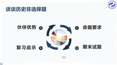 本次活動(dòng)第一個(gè)議題是2021-2022(上)大連市期末考試歷史試題分析。大連二十高中的韓菊老師先做了對(duì)選擇題的分析,韓老師從命題設(shè)計(jì)思路、試題內(nèi)容分析、考試情況總結(jié)三個(gè)方面著眼,特別對(duì)學(xué)生回答不理想的試題進(jìn)行了重點(diǎn)剖析,為下一步教學(xué)提供了經(jīng)驗(yàn)。遼寧師范大學(xué)附屬中學(xué)崔紅巖老師從伙伴優(yōu)勢(shì)、命題要求、期末試題、復(fù)習(xí)啟示四方面對(duì)非選擇題做了深度分析,崔老師從高考試題的視角審視這套期末考試試題,建議高二歷史教學(xué)始終要以立德樹(shù)人為目的、以核心素養(yǎng)為目標(biāo),課堂教學(xué)立足新教材、貼近新高考。