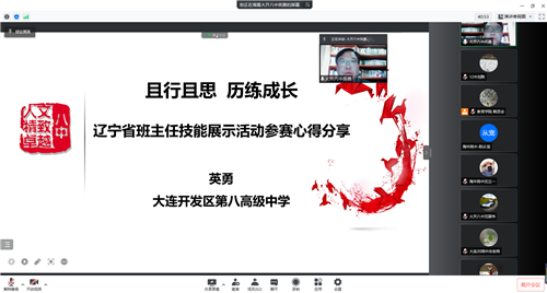 開發(fā)區(qū)第八中學(xué)范景偉主任在會(huì)上做題為《浸潤德育引航,生命怡然綻放》的報(bào)告。報(bào)告從德育文化、德育課程、心理健康、德育管理四方面,結(jié)合學(xué)校實(shí)際介紹開發(fā)區(qū)八中特色德育課程。隨后,英勇老師介紹“全國中小學(xué)班主任基本功展示活動(dòng)”獲獎(jiǎng)經(jīng)驗(yàn),針對育人故事、帶班方略、班會(huì)課三項(xiàng)內(nèi)容介紹設(shè)計(jì)思路,分享心得體會(huì)。