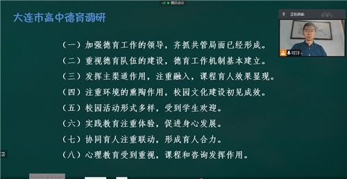 高中德育研訓(xùn)教師韓賢會(huì)總結(jié)2021秋季學(xué)期工作。他結(jié)合上學(xué)期德育調(diào)研工作,分享各學(xué)校落實(shí)一校一案的亮點(diǎn)做法,并從德育體系打造、德育隊(duì)伍建設(shè)、德育科研開展等方面提出整改建議。會(huì)議還布置安排了春季學(xué)期工作,對“學(xué)習(xí)雷鋒精神優(yōu)化營商環(huán)境”活動(dòng)征集,基地校評選,德育教研,教育敘事、帶班方略征集等重點(diǎn)工作進(jìn)行解讀和布置。會(huì)議強(qiáng)調(diào)教師德育科研的重要作用,敦促學(xué)校加強(qiáng)德育科研,調(diào)動(dòng)教師開展科研的積極性,增強(qiáng)德育工作的科學(xué)性、系統(tǒng)性和實(shí)效性。