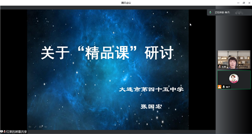 在本次研訓活動中,首先,李炎老師總結(jié)了2021年“基礎(chǔ)教育精品課”評選活動,并播放了獲得部級優(yōu)質(zhì)課的課例,通過對該課的評價提出教學設(shè)計有效策略;其次,大連市第四十五中學的市級骨干教師張國宏老師做了“關(guān)于‘精品課’評選活動的初探”的講座,張老師從選題、設(shè)計、制作、注意事項等方面分享了對“精評課”的認識;最后,李炎老師提出了關(guān)于線上教學期間學生學習指導的策略,并針對線上線下教學銜接內(nèi)容提出了要求和建議。