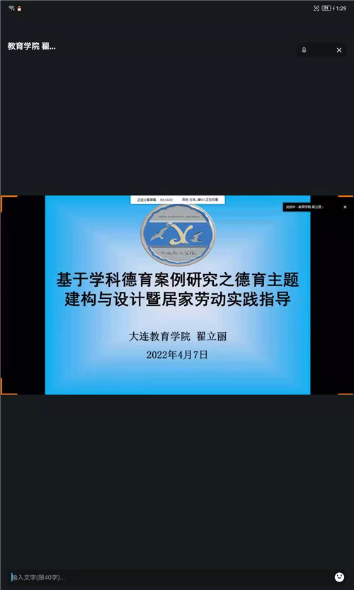 為深入貫徹落實(shí)《中共中央國務(wù)院關(guān)于全面加強(qiáng)新時(shí)代大中小學(xué)勞動(dòng)教育的意見》,落實(shí)黨的教育方針和市教育局相關(guān)通知要求,實(shí)現(xiàn)線上教學(xué)期間“五育并舉”。2022年4月7日,大連市初中勞動(dòng)、綜合實(shí)踐活動(dòng)“基于學(xué)科德育案例研究之德育主題建構(gòu)與設(shè)計(jì)暨居家勞動(dòng)實(shí)踐指導(dǎo)”主題教研活動(dòng)在線上開展。活動(dòng)由大連市初中市級(jí)教研員翟立麗主持。各區(qū)市縣教研員、核心組成員共同參加了此次活動(dòng)。