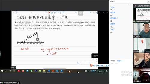 大連第24中學(xué)的鄭詩宇老師上了《機(jī)械能守恒定律》習(xí)題課,她以連接體模型為例,運(yùn)用動(dòng)力學(xué)、動(dòng)能定理和機(jī)械能守恒定律三種方法解決問題進(jìn)行比較,明確運(yùn)用機(jī)械能守恒定律解決系統(tǒng)問題的優(yōu)越性。分析繩牽連和桿牽連兩種典型問題,突破物體間的關(guān)聯(lián)速度,抓住機(jī)械能守恒定律的條件,建立物理關(guān)系式,解決系統(tǒng)機(jī)械能守恒問題。本課主題明確,思路清晰,不僅能建立正確的物理觀念,用能量觀念解決問題,更能培養(yǎng)了學(xué)生的科學(xué)思維,建立物理模型。由于正處于疫情期間,鄭老師采用線上授課,實(shí)時(shí)進(jìn)行板書、板畫,很好地展示了思維發(fā)展過程,并通過設(shè)置問題,加強(qiáng)和學(xué)生視頻互動(dòng),提高學(xué)生在線學(xué)習(xí)效率。大連23中胡春海和大連長興島高中常久城老師進(jìn)行了評(píng)課,互相交流、互相促進(jìn)。