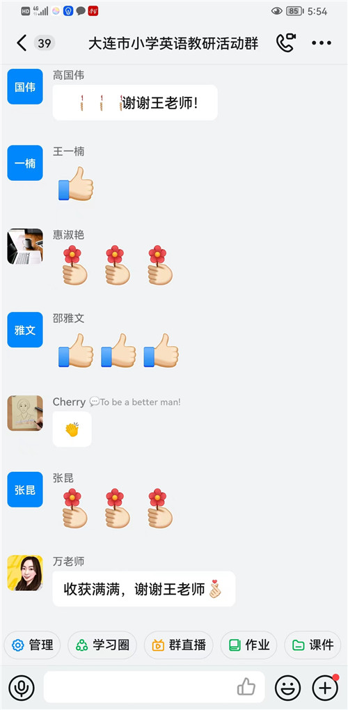 本次研討分為兩部分:一是基于《大連市小學(xué)英語作業(yè)指導(dǎo)意見》開展的有效作業(yè)研究;二是基于即將頒布的新《義務(wù)教育英語課程標(biāo)準(zhǔn)》“以大觀念為綱,開展單元整體設(shè)計(jì),促進(jìn)學(xué)生核心素養(yǎng)融合發(fā)展”理念的單元整體教學(xué)的作業(yè)研究。市內(nèi)五區(qū)、旅順口區(qū)與金普新區(qū)的骨干教師為老師們帶來了豐富的一線教學(xué)實(shí)踐研究經(jīng)驗(yàn),這些寶貴經(jīng)驗(yàn)為大家提供了學(xué)習(xí)和借鑒的豐富營養(yǎng)。市教研員王玉玲老師對(duì)此進(jìn)行了精準(zhǔn)的總結(jié)與點(diǎn)評(píng),進(jìn)而對(duì)今后深度學(xué)習(xí)與研究的目標(biāo)方向提出了新要求。