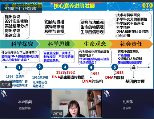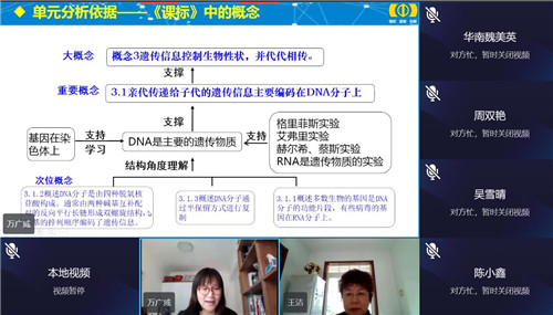 此次線上活動(dòng)主要有兩大主題,一是基于核心素養(yǎng)的必修2第3章的單元教學(xué)設(shè)計(jì)及其實(shí)踐,基于此8中的三位老師做了主講。其中教研組長(zhǎng)萬(wàn)廣威老師代表8中高一備課組做了第3章總體的單元教學(xué)設(shè)計(jì),她從單元主題的相關(guān)概述、單元教學(xué)的整體規(guī)劃、課時(shí)任務(wù)的具體設(shè)計(jì)(課例)、評(píng)價(jià)設(shè)計(jì)和作業(yè)落實(shí)四個(gè)方面對(duì)第3章的單元教學(xué)進(jìn)行了既有理論高度、又有每節(jié)具體課例的詳盡分析。隨后田原老師和吳雪晴老師分別針對(duì)第3章第1節(jié)和第2節(jié)進(jìn)行了無(wú)學(xué)生參與的網(wǎng)課實(shí)踐。可以說(shuō),有理有據(jù)的單元教學(xué)設(shè)計(jì)及其單元設(shè)計(jì)指導(dǎo)下的具體的課時(shí)教學(xué)實(shí)踐讓老師們對(duì)單元教學(xué)和課時(shí)教學(xué)的關(guān)系與區(qū)別有了更深刻的認(rèn)識(shí)!二是對(duì)線上教學(xué)的指導(dǎo),分別由開(kāi)發(fā)區(qū)一中的刁蓓老師和大連教育學(xué)院高中研訓(xùn)中心的王潔老師做了主講。刁蓓老師以‘網(wǎng)課也“瘋狂”——技術(shù)小妙招’為題,從授課方式存謎題、課堂管理成問(wèn)題、監(jiān)考批改是難題三個(gè)方面介紹了她的小妙招,睿智、實(shí)用的小妙招非常利于老師們更好地開(kāi)展線上教學(xué)。王潔老師根據(jù)自己觀課視導(dǎo)的情況總結(jié)了線上教學(xué)體現(xiàn)好的方面、不好的方面,并據(jù)此提出了改進(jìn)的建議。
