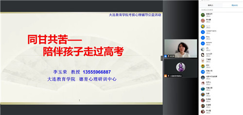 4月23日下午,大連教育學院考前心理輔導公益活動為大連24中學、育明高中、36中學、2中、13中和長海高中6所學校的高三家長開展了線上家長心理輔導講座。