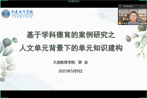 活動由大連市初中音樂教研員薛金老師主持,薛老師為參會老師作了《“人文單元”背景下的單元知識建構(gòu)》專題講座,從音樂學科的“單元”內(nèi)涵與規(guī)劃的角度結(jié)合剛剛頒布的《義務(wù)教育藝術(shù)課程標準》的課程內(nèi)容框架,闡述了如何在實施“人文主題”教材自然單元時,將學科主題內(nèi)容、結(jié)構(gòu)與教材自然單元的學習內(nèi)容進行有效地銜接,從而實現(xiàn)在教學中體現(xiàn)“基于課程標準”的實踐意識和“通過教材(作品)教音樂”的具體路徑和策略。