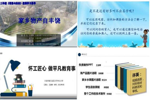 接下來第二個環(huán)節(jié)是教師個人的教研、教學(xué)成果分享。普蘭店太平中心小學(xué)校長王劍鋒老師分享的是統(tǒng)編版道德與法治三年級《家鄉(xiāng)物產(chǎn)自豐饒》一課。王校長以《懷工匠心做平凡教育事》為題目,分享了自己學(xué)校在接到任務(wù)以后組建團(tuán)隊、整合打磨、各顯其能、后期制作的艱難歷程。通過這一節(jié)課的錄制,普蘭店太平中心小學(xué)的老師們更加堅定了信心,研究一輩子教育,努力做到盡善盡美、精益求精,做平平凡凡的教育事。