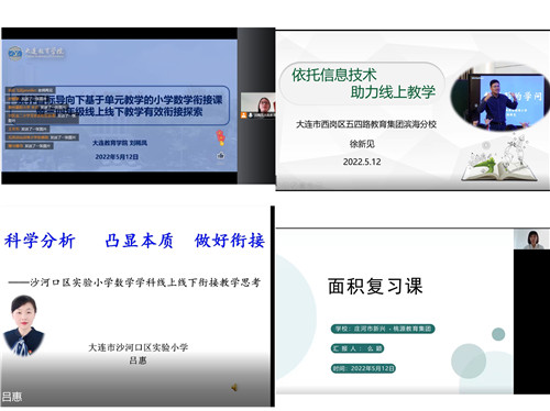 教研活動(dòng)由大連教育學(xué)院小學(xué)研訓(xùn)中心數(shù)學(xué)教研員劉稀鳳主持,活動(dòng)內(nèi)容分為“線上教學(xué)經(jīng)驗(yàn)分享”和“基于單元的線上線下教學(xué)銜接的思考”兩部分內(nèi)容。大連市西崗區(qū)五四路教育集團(tuán)濱海分校徐新見主任以《依托信息技術(shù)助力線上教學(xué)》為題介紹了線上教學(xué)經(jīng)驗(yàn)。沙河口區(qū)實(shí)驗(yàn)小學(xué)的呂惠主任和莊河市新興?桃園教育集團(tuán)的么穎老師以三年級《面積》為例分別做了查缺補(bǔ)漏課和整理復(fù)習(xí)課的案例分享,展示了如何進(jìn)行精準(zhǔn)的學(xué)情分析、科學(xué)的活動(dòng)設(shè)計(jì),如何基于學(xué)生的已有梳理優(yōu)化學(xué)生知識與方法的結(jié)構(gòu)。最后劉稀鳳老師給出了教學(xué)銜接的總體建議,指出在學(xué)情摸底、課程計(jì)劃、教學(xué)方式、練習(xí)與作業(yè)設(shè)計(jì)及學(xué)習(xí)評價(jià)”等方面需要注意的問題,并結(jié)合兩個(gè)案例給出了具體做法。