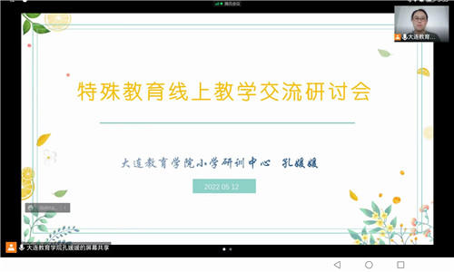 5月12日下午,“大連市特殊教育線上教學(xué)研討會”通過騰訊會議召開。本次活動由學(xué)院小學(xué)研訓(xùn)中心特殊教育教研員孔媛媛主持,全市各特殊教育學(xué)校教學(xué)負(fù)責(zé)人及相關(guān)教師參加了本次培訓(xùn)。