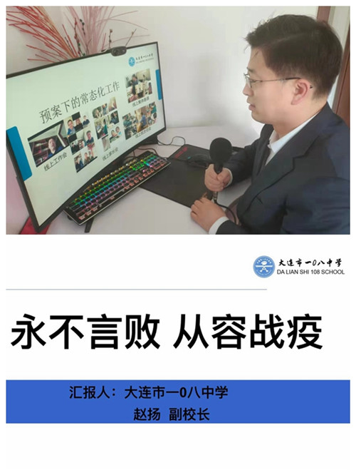 本次活動的主題是“疫情防控期間線上教學(xué)的實(shí)施與管理”。首先羅老師對自3月14日線上教學(xué)以來各校的日報、周報情況進(jìn)行了簡要總結(jié),通報了部分學(xué)校的完成次數(shù),概述了各校線上教學(xué)實(shí)施與管理的優(yōu)點(diǎn)與不足。其次有6所學(xué)校分別對兩個月以來線上教學(xué)期間的課程實(shí)施、校本教研、德育活動等方面進(jìn)行了經(jīng)驗(yàn)分享,分別是大連理工大學(xué)附屬高級中學(xué)、大連鐵路中學(xué)、大連藝術(shù)學(xué)院附屬高級中學(xué)、大連市第一O八中學(xué),大連市第二中學(xué)和大連市育明高級中學(xué)。六所學(xué)校都能堅(jiān)持五育并舉,構(gòu)建線上教學(xué)實(shí)施與管理新格局;認(rèn)真貫徹落實(shí)大連市教育局、大連教育學(xué)院下發(fā)的各類指導(dǎo)文件,組織全校教師開展線上教學(xué)研究、骨干公開課以及日常巡課、聽評課等活動,確保線上教學(xué)質(zhì)量“不打折”;同時,各學(xué)校又突顯了自己的亮點(diǎn)與特色,如大工附高的“心理輔導(dǎo)全時段、德育活動全引領(lǐng)”、鐵路中學(xué)的“C30+智慧課堂、大數(shù)據(jù)多元評價”、大藝附高開展以“核心價值觀、傳統(tǒng)文化、生態(tài)文明、安全、勞動”為主題的德育活動、一O八中學(xué)“主題化團(tuán)課、青春旋律校園之聲系列活動”、二中的“人文關(guān)懷教情學(xué)情、豐富多彩校本課程”、育明高中的“遴選優(yōu)質(zhì)網(wǎng)絡(luò)教學(xué)資源、全方位居家生活指導(dǎo)”等為兄弟學(xué)校提供了很有價值的參考與借鑒。