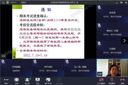 2022年5月23日下午,大連市高二生物學學科5月的線上教研活動以小魚易連的方式舉行,共有108名高二年級的生物學教師參與了此次活動,此次活動由大連教育學院高中生物學研訓教師王潔老師主持。