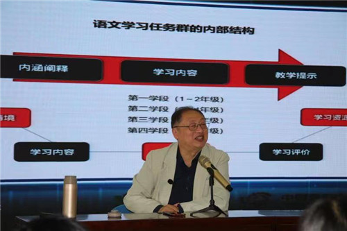 承接閻老師的點(diǎn)評(píng),夏德剛老師傾情呈現(xiàn)了一場(chǎng)開拓思路的主題講座,不僅解讀了2022版新課標(biāo)中值得關(guān)注的理念和新增點(diǎn),還呈現(xiàn)、分析了學(xué)業(yè)質(zhì)量的基本框架。夏老師用大量的教材實(shí)例呈現(xiàn)了不同類型的作業(yè):概括主要內(nèi)容類作業(yè)、詞語(yǔ)類作業(yè)、修辭方法及作用類作業(yè)、寫作手法及作用類作業(yè)以及線索的作用類作業(yè)等等。更寶貴的是,夏老師用生動(dòng)具體的教學(xué)案例教給老師們?cè)鯓右I(lǐng)學(xué)生精準(zhǔn)審題,并規(guī)范、完整、有效地完成作業(yè)。