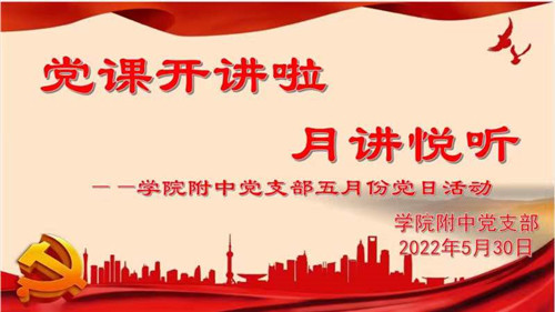 5月30日下午,依據(jù)學院黨委的工作部署,學院附中黨支部組織全體黨員同志在新時代黨員群眾講習所101室和線上召開了“黨課開講啦•月講悅聽”—5月份黨日活動,會議由黨支部書記林杉主持,支部宣傳兼紀檢委員李紅主講,高三、初三黨員同志連線參會。