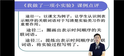 閻芳老師談到,借助圖表整理實(shí)驗(yàn)的關(guān)鍵信息,是對(duì)實(shí)驗(yàn)過(guò)程的再現(xiàn)和總結(jié),既有助于加深對(duì)實(shí)驗(yàn)的理解,又有助于發(fā)展語(yǔ)言表達(dá)能力和分析概括能力。而表示時(shí)間順序的關(guān)聯(lián)詞語(yǔ)能幫助學(xué)生將實(shí)驗(yàn)過(guò)程寫(xiě)得更清楚明了。王嬌老師針對(duì)第二個(gè)學(xué)習(xí)目標(biāo)提出見(jiàn)解,通過(guò)動(dòng)作、神態(tài)、心理表現(xiàn)人物的心情對(duì)于三年級(jí)的學(xué)生來(lái)說(shuō)很難。“利用視頻,回憶實(shí)驗(yàn)過(guò)程;通過(guò)表演,細(xì)化人物心情;借助修辭,豐富語(yǔ)言表達(dá)”這三個(gè)途徑,可以幫助突破學(xué)生這個(gè)難點(diǎn)。邵杰老師提出習(xí)作是學(xué)生學(xué)習(xí)寫(xiě)作的過(guò)程,作文、品評(píng)、修改三者是相輔相成、相互促進(jìn)的。在作文教學(xué)中,不僅要教給學(xué)生寫(xiě)作的技巧,還要教給學(xué)生評(píng)改的技能,把學(xué)生從作文評(píng)改的被動(dòng)者轉(zhuǎn)為主動(dòng)者,養(yǎng)成凡寫(xiě)必改的好習(xí)慣,讓修改成為寫(xiě)作的必要組成部分。