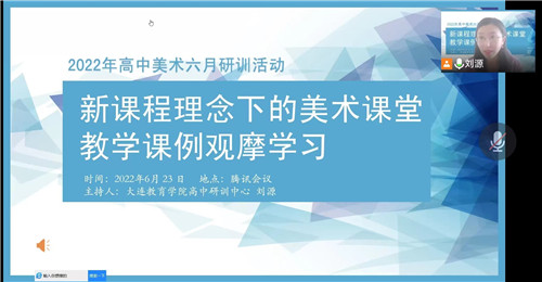 2022年6月23日下午,圍繞“新課程理念下的美術課堂教學課例觀摩學習”主題的大連高中美術學科六月研訓活動于騰訊會議如期舉行,大連教育學院高中研訓中心美術研訓教師劉源主持活動,全體高中美術教師參會。