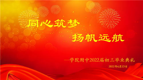 這是一次別樣的畢業(yè)典禮,是一節(jié)意義非凡的“最后一課”,是“畢業(yè)禮”,也是“祝福禮”,更是“啟程禮”,祝福2022屆全體初中畢業(yè)生:在人生的新征程中,不忘初心,奮勇翱翔,開拓出更加美好的未來,讓師生一起同心筑夢,揚(yáng)帆遠(yuǎn)航!