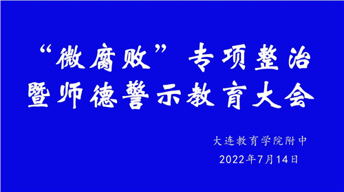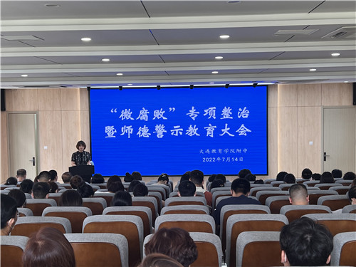 7月14日下午,為深入學(xué)習(xí)貫徹習(xí)近平總書記關(guān)于持續(xù)整治群眾身邊腐敗和作風(fēng)問題的重要指示精神,大力整治人民群眾反映強(qiáng)烈的教育領(lǐng)域突出問題,依據(jù)《大連市教育局關(guān)于印發(fā)教育領(lǐng)域“微腐敗”侵害群眾利益問題專項(xiàng)整治工作實(shí)施方案的通知》精神要求,學(xué)院附中在301多媒體報告廳召開“微腐敗”專項(xiàng)整治暨師德警示教育大會。附中黨支部書記林杉主講,全體初、高中教職員工參會。會風(fēng)嚴(yán)肅,直切主題。