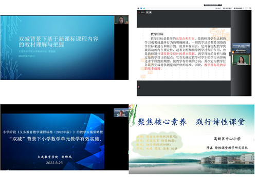 本次培訓(xùn)主題聚焦素養(yǎng)目標(biāo)導(dǎo)向的課堂教學(xué)實施,23日先由大連教育學(xué)院小學(xué)數(shù)學(xué)研訓(xùn)教師李艷麗、劉稀鳳、劉悅紅分別圍繞著新課程標(biāo)準(zhǔn)的課程內(nèi)容理解、課程實施策略及教學(xué)目標(biāo)設(shè)計進行專題講座,之后高新區(qū)中心小學(xué)隋鑫校長團隊做實踐經(jīng)驗分享,24日由來自沙河口區(qū)教師進修學(xué)校教研員劉巖敏、高新區(qū)教師進修學(xué)校教研員孫旭東、甘井子區(qū)教師進修學(xué)校教研員劉清美、西崗區(qū)招生辦公室教研員屈宏媛分別做《基于核心素養(yǎng)小學(xué)生量感的培養(yǎng)》《雙減背景下小學(xué)數(shù)學(xué)課堂練習(xí)設(shè)計與實施》《核心素養(yǎng)導(dǎo)向下的小學(xué)教學(xué)策略》《雙減背景下有效作業(yè)設(shè)計的思考的專業(yè)》的專業(yè)引領(lǐng)。培訓(xùn)者們結(jié)合自身多年的豐富教育教學(xué)經(jīng)驗及學(xué)科教學(xué)研究經(jīng)驗,依據(jù)國家、省、市減負增效和落實新課程標(biāo)準(zhǔn)的基本要求,由淺入深、深入淺出的為參訓(xùn)教師提供了一份營養(yǎng)豐富的小學(xué)數(shù)學(xué)專業(yè)“大餐”,獲得與會教師的高度評價。