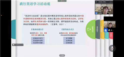 本次培訓由市研訓教師劉敬雯、單江紅主持,先后邀請了義務教育英語課標組專家、北京外文學院程曉堂教授,遼寧教育學院英語教研員李翠珍老師,北京外國語大學博士、《英語學習》雜志社主編徐浩老師和大連市沙河口區(qū)英語教研員張宏老師單元整體教學設計團隊為老師們從課標概念理解和課堂教學實踐進行了卓有成效的指導和引領。