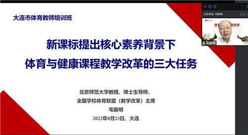 為更好地貫徹習近平新時代中國特色社會主義思想,落實立德樹人根本任務,幫助廣大骨干教師在“雙減”背景之下,與時俱進,明確改進課程的內容組織與呈現(xiàn)形式,引導教師注重加強學科素養(yǎng)目標導向下的課堂教學理念,2022年8月22日-24日,大連市小學體育與健康學科124名骨干教師相約線上,開展了主題為“‘雙減’背景下,聚焦素養(yǎng)目標導向的課堂教學實施”培訓活動。本次活動共安排了六個主題的培訓內容,培訓團隊由國家級學科專家、省級學科專家、市級教研員及一線骨干教師組成,既有高屋建瓴的理念分享,又有下接地氣的經(jīng)驗交流。